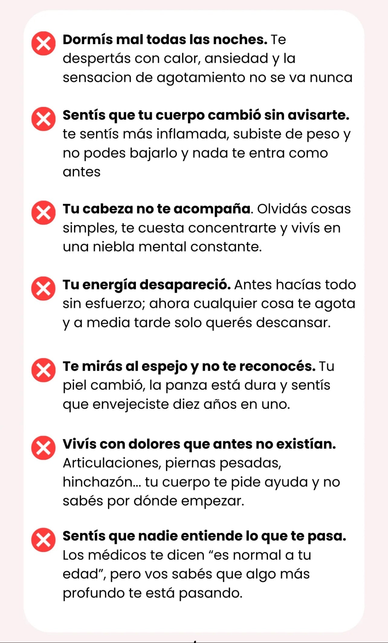 Este programa está diseñado tanto para perimenopausia como para menopausia, porque la transición empieza antes y es fundamental acompañarla bien.
